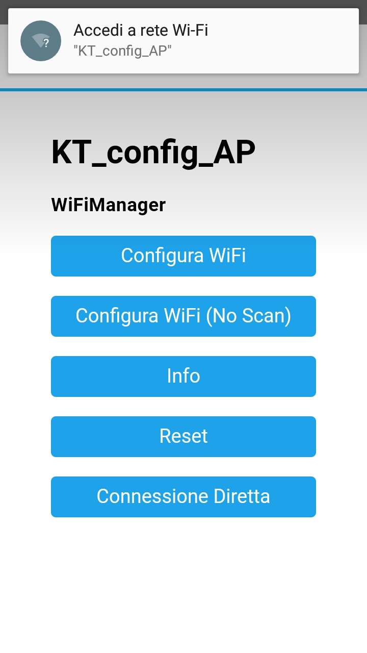 A questo punto troverete sul vs. smartphone la richiesta di configurazione con una SSID chiamata